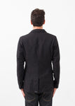 The Check Blazer from Sage de Cret is an interchangeable piece for both day and night wear. Three button closure at front. Lining. Three exterior pockets at front. Color Black. 56% Wool, 44% Polyester, Lining 100% Polyester. Made in Japan. Jacob is wearing a Medium.