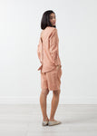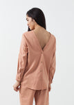 Spring forward with glorious enthusiasm for summer with Jesse Kamm's ACB Top. The line is charming and easy, with hints of nautical inspiration. Open back with V. Button placket closure at center back. Color Brick. 45% Tencel, 40% Cotton, 15% Flax. Made in U.S.A. Ashley is wearing an X-Small.