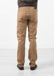 Richly dyed cotton sets off cleanly styled, incredibly soft pants cut with a straight leg and classic five-pocket style by Homecore. Color Sand. 98% Cotton, 2% Lycra. Made in Portugal. Jacob os wearing a 34.