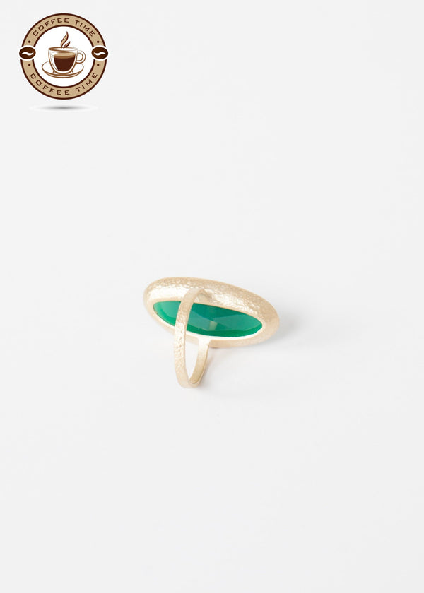Quintessential elegance with delicate details. Texture ring base emphasizes the statement cylindrical stone. 5 Octobre. Color Agate and Gold. Made in France.