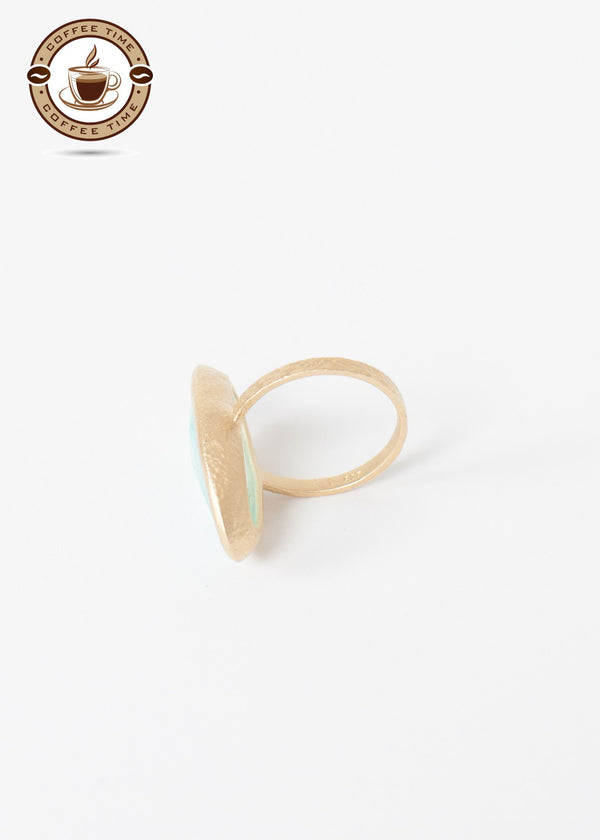 Quintessential elegance with delicate details. Texture ring base emphasizes the statement cylindrical stone. 5 Octobre. Color Calcedoine and Gold. Made in France.