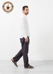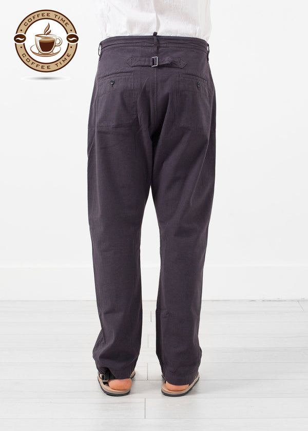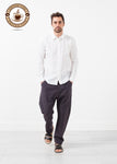 With just enough room to be "oversized," the Balda Pant from Hannes Roether makes functional comfort its priority. Back waist tie for adjustability. Drop crotch. Color Phantom. 100% Cotton. Made in the EU. Jacob is wearing a Medium.