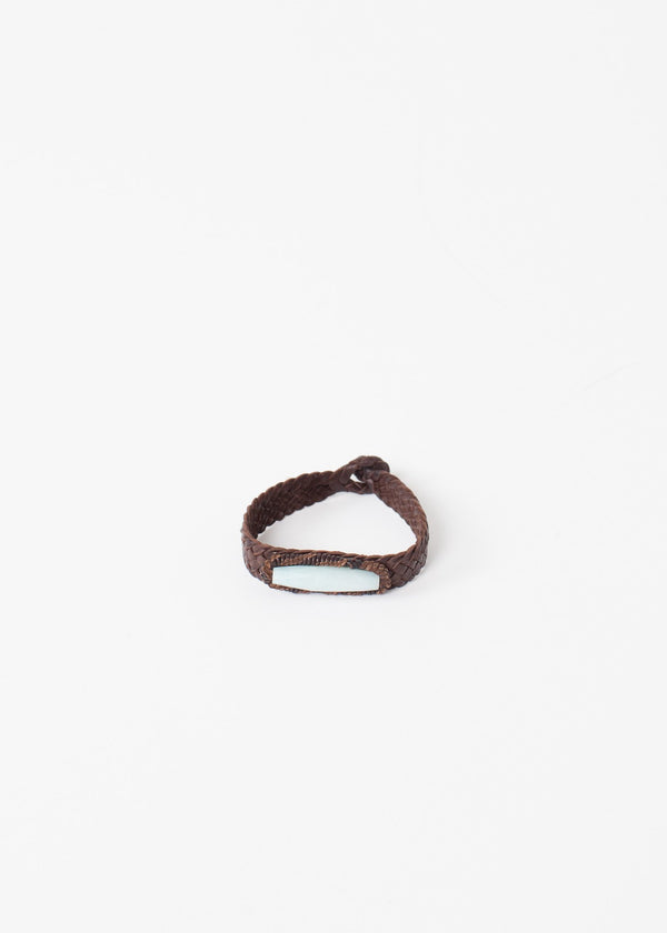 Kalosoma Jewelry demonstrates the rigorous beauty in the handmade. Statement Calcedony stone braided into delectable leather band. Scarab detail. Knotted closure. Color Brown. 100% Leather. Made in Mexico. Length 7 Inches.