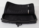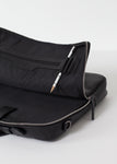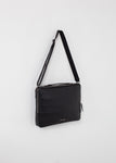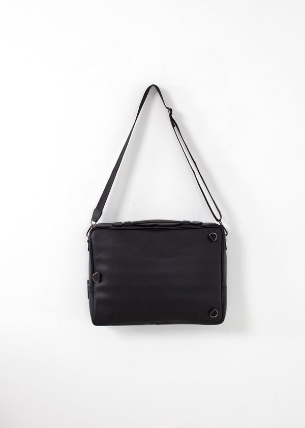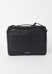 Classic, black case to hold all the essentials. Wearable as messenger bag or backpack. Bedford 11th. Black Leather.