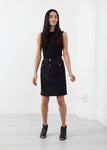 The Converge Skirt from HIGH gives the classic pencil skirt a modern update in material and details. Side angled pockets at front with zip closures. Half zip closure at front with elastic waistband for ease. Color Black. 95% Nylon, 5% Elastane, 2nd Fabric 88% Nylon, 12% Elastane. Made in Morocco. Ashley is wearing a Size 40.
