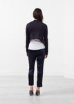 The Draped Neck Cardigan from Lars Andersson is a cozy spring selection with simple caresses of silk. Color Shale. 60% Silk, 40% Cotton. Made in Nepal. Lana is wearing a Small.