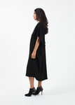 With Kimono-like sleeves, this sheath dress from Co. pairs beautifully with the season. High neckline with billowing material. Invisible zip closure at center back neck. Elastic waistband for ease. Color Black. 82% Triacetate, 18% Polyester. Made in China. Ashley is wearing an X-Small.