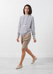 The Harem Chino from NLST is just the right amount of casual to offbeat. Side angled pockets at front with single coin pocket, two exterior pockets at back. Button fly closure at front. Color Khaki. 100% Cotton. Ashley is wearing a Size 25.