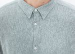 V:Room takes the classic button up and plays it casual by giving it a contrasting fabric inside. Curved hem with side splits. Color Blue/Grey. 100% Cotton. Matt is wearing a size Large. Matt is 6’2”, Chest 38”, Waist 31”, Inseam 34.5”.