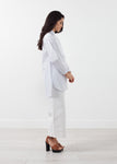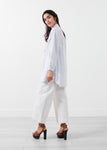 The Kate Tunic with its' eye-catching details is an inclusive piece. Combining classic details with bohemian flourish. Front button placket, standard sleeves, and a layered hem. Yoshi Kondo. Color White. 100% Cotton. Made in Romania. Ashley is wearing a Small.