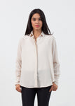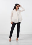 The graceful Lima adds stunning embellishment to the springtime closet. Essentially frameless, this top incarnates the feminine mystique. Hidden front button placket. Lareida. Color Blush. 100% Silk. Made in Portugal. Ashley is wearing a 34.