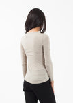 The Long Sleeved Tee is slim fitting and lightweight. Seasonless by nature, the highly versatile top is layer-able for all weather. Wide crew neckline. Colors available; White, Black, Beige. 100% Organic Cotton. Made in Peru. Ashley is wearing an X-Small.