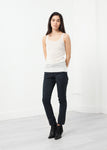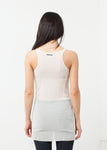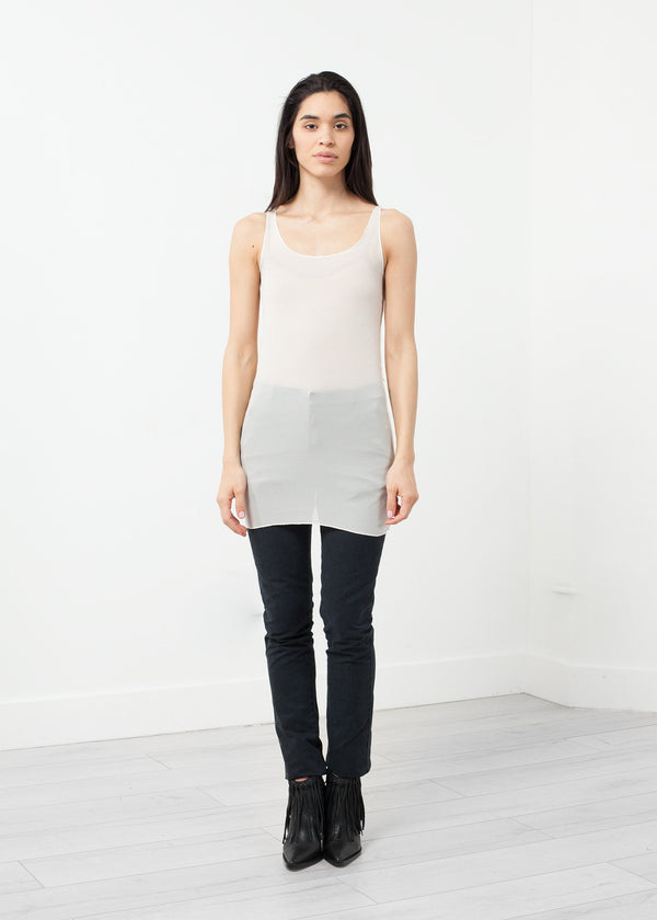 The Long Tank adds dimension with only the slightness of sheer. Textural beauty with exposed seams. Album di Famiglia. Color Cream. 93% Silk, 7% Elastane. Made in Italy. Ashley is wearing an X Small.