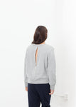 A substantial crew neck sweatshirt from Japanese company AR SRPLS who are know for their military with a twist collections. A closed silver zip runs the length of the center back. Color Grey. 100% Cotton. Lana is wearing a size Small.