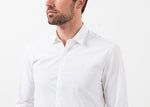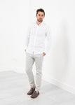 The Milano Shirt is classically tailored as the everyday button up shirt for both casual and more formal wear. Red embroidery cascades the center back seam as a nicely added detail. Covered button placket closure at front. Homecore. Color White. 100% Cotton. Made in Portugal. Jacob is wearing a Medium.