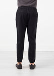 Sage de Cret is a menswear label made for men, and made to be worn as however they see fit. Paying homage to the vibrant tradition of menswear, their pieces are unconstrained by convention. The Cargo Pant presents flexibility in fit while classism in shape. Single button closure with zip fly at front with elastic waistband for ease. Four exterior pockets. Color Black. 100% Polyester. Made in Japan. Jacob is wearing a Large.
