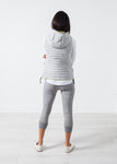 The Primula Vest makes a perfect accessory for spring weather. Sleeveless, adjustable waist drawstring, and various interior and exterior pockets. Front zip closure with hood. Fully lined. Duvetica. Color Light Grey. 100% Polyamide, 100% Cotton, Goose New Down. Made in Bulgaria. Ashley is wearing an Italian 40.