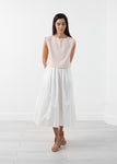 This whimsical piece is a full-length, full skirted beauty. Take her for a spin. Jesse Kamm. Color White. 60% Cotton, 40% Polyester. Made in U.S.A. Ashley is wearing an X-Small.