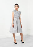 The Rhesus Gown is a romantic piece of gathering and placement. Invisible zip closure at side. Circle skirt with boning for shape. Lilith. Color Grey. 100% Polyester. Made in Tunisia. Ashley is wearing an X Small.