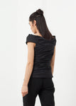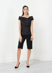 The Riot Top is a romantic piece of gathering and placement. Invisible zip closure at side. Lilith. Color Black. 100% Polyester. Made in Tunisia. Ashley is wearing an X Small.