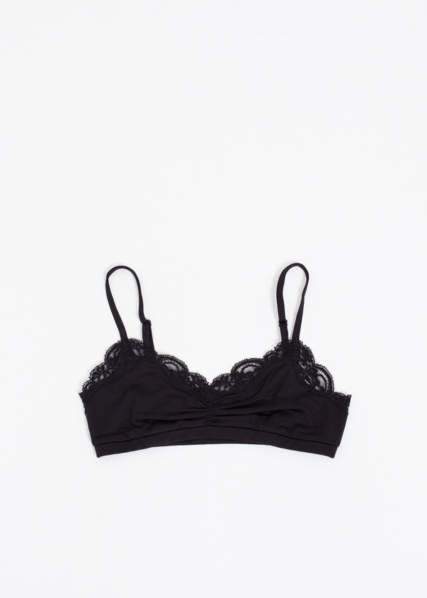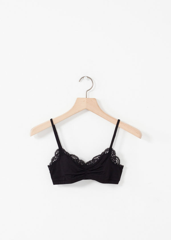 The Ruche Bra from Only Hearts offers a delicate fit for your everyday needs with a fun lace trim. Color Black. 90% Nylon, 10% Lycra. Made in U.S.A.
