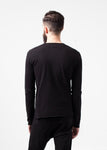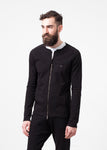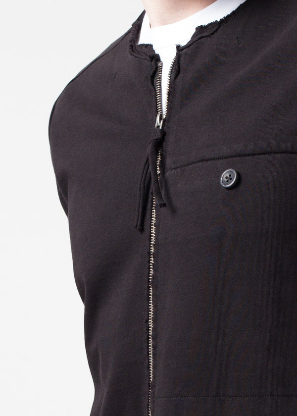 The Rumor Jacket speaks to the raw urbanity of all things. Unfinished hemlines, side paneling, and semi-raglan sleeves. Interior breast pocket. Front waist pockets. Full contrast zip at center front. Hannes Roether. Color Black. 100% Cotton, 95% Cotton, 5% Elastane. Addis is wearing a Small.
