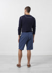 The Sergio Short is a summer staple. Three exterior pockets. Five button fly closure at front. Leather tie. Homecore. Color Metal. 100% Cotton. Made in Portugal. Matt is wearing a Size 32. Matt is 6’2”, Chest 38”, Waist 31”, Inseam 34.5”.