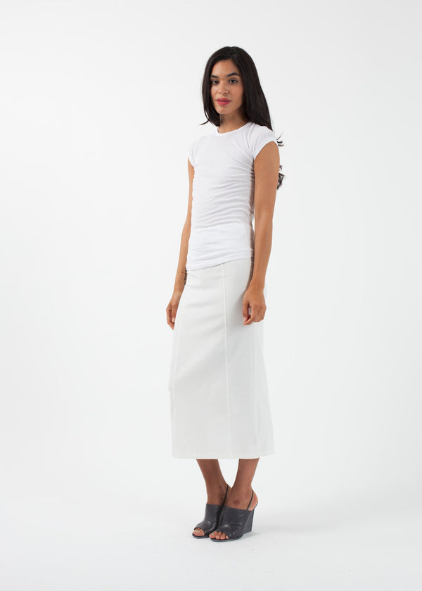 The Fitted Tee from Organic by John Patrick is your perfect summer go-to. This slim fitting piece is lightweight and durable. Capped Sleeves. Crew neckline. 100% Organic Cotton. Made in Peru. Ashley is wearing an X-Small.