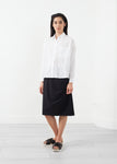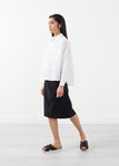 The Ruche Skirt offers an easy go-to for your busiest times. Pencil silhouette, knee length. Invisible zip closure at side. Hovman. Color Black. 80% Polyamide, 20% Elastane. Ashley is wearing a German 34.