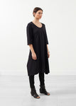This reinterpretation of closet staples with water resistant features demonstrates Hovman's ability to offer functional classics for everyday wear. The Sleeve Dress provides uniqueness in texture and silhouette. Scooped neckline. 3/4 inch sleeves. Sleeve tie at waist. Color Black. 80% Polyester, 20% Elastane. Lana is wearing a German 34.
