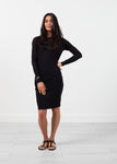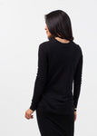 The Tetra Top is perfected for any summer long-sleeve requirements. Layering is optional with its lightweight, barely sheer body. Gathered details at left seam. Uniquely structured neckline. Drifter. Color Black. 100% Pima Cotton. Made in the U.S.A.