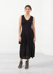 The gentle v-neckline gracefully accentuates the neck and collarbone while the light princess seaming flatters the form. Accent ruffles at the asymmetrical hemline glide across the waist. Ivan Grundahl. Color Black. 96% Viscose, 4% Elastane, Trimming 100% Cotton. Made in the EU. Lana is wearing a Small.