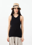 The combination of waffle and rib knits offers uniqueness in look with lots of stretch for perfection in fit. Crew neckline. Extended button placket at front. V:Room. Color Black. 100% Cotton. Made in Japan. Ashley is wearing an S/M.