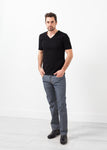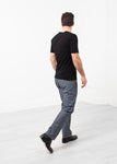 Fortela's Washed Denim is almost worn in and ready to serve. Looser fitting through the leg, the lighter wash is versatile for various combinations. Single button closure with zip fly. Four exterior pockets with coin pocket. Color Blue. 100% Cotton. Made in Italy. Jacob is wearing a 33.