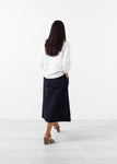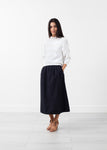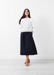 Wide stripes, wide neckline, and dolman sleeves add to the neutrality of this sweater. Perfect as a coverup or statement go-to, this top is ready for summer. 3/4 inch sleeves. Sayaka Davis. Color White. 100% Cotton. Made in U.S.A. Ashley is wearing an X-Small.