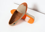 Not your Grandfather’s house shoes. These Loafers from Verba are classic in silhouette, yet contemporary with a canvas body and neon soles. Leather trim. Color Orange. Made in Italy.