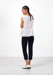 Ashley is wearing a Size 6 in Black and a Size 2 in Navy.